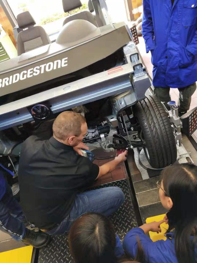 此次培训的内容主要包括汽车底盘技术、发动机系统管理、汽车数据传输技术、高压电技术和汽车空调技术。大部分课程都安排在汽车实训场所,由Hr. Göpfert、Hr. Pelz、Hr.Kammer等大师讲授。他们以行动为引导,结合理论和操作,实现一体化教学。在讲授的过程中,大师们兢兢业业的教学精神、认真严谨的教学理念引发了前去学习的教师深刻地自我审查,老师们一丝不苟、全神贯注,希望能够学以致用、提升实践操作水平。