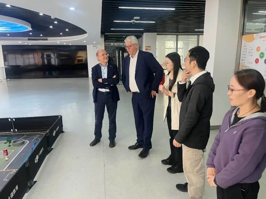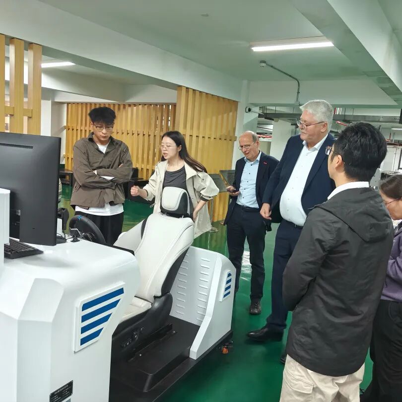 在人工智能学院副院长李忠唐、汽车服务工程专业主任石玲等陪同下,德方代表团首先参观了光华楼、星华楼等教学实训场所,深入了解汽车服务工程专业的教学设施与人才培养模式,对天华学院在人工智能赋能职业教育方面的创新实践给予了高度评价。