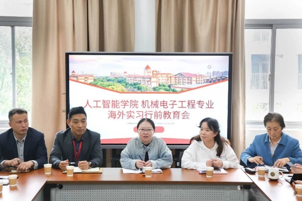人工智能学院于2024年11月14日12时在明460室进行机械电子工程专业海外实习行前教育会。出席本次会议的有国际交流处副处长夏智源、国际交流处教师赵诗佳、学保处处长助理张军、学院顾问林军、人工智能学院副院长吕博、人工智能学院党委书记赵科、人工智能学院党委副书记李书祥、机械电子工程专业主任朱龙俊、机械电子工程专业教师安文雅、机械电子工程专业教师徐如斌、机械电子工程专业辅导员胥传锦、2021级机械电子工程专业出国学生。本次会议由副院长吕博主持。