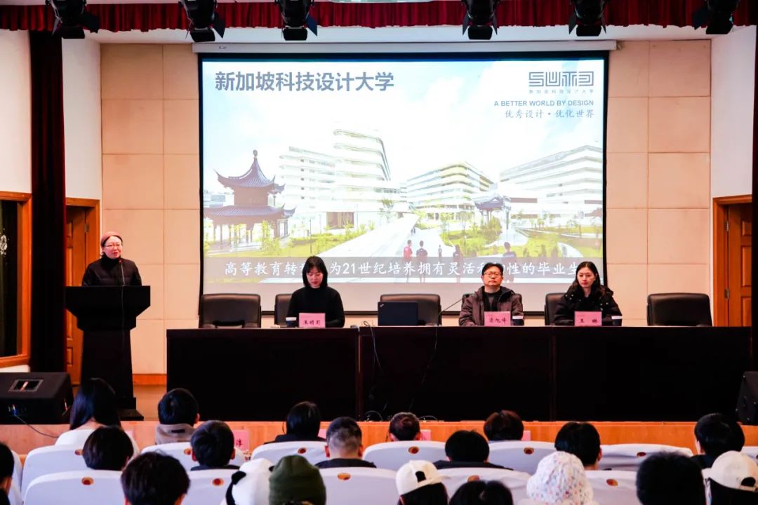 凌院长在会中指出了同学们毕业后的方向并推荐同学们前往新加坡科技设计大学进一步攻读硕士学位,简明地介绍了新加坡科技设计大学的创建背景以及师资力量,阐述了他对新加坡科技设计大学的感想。