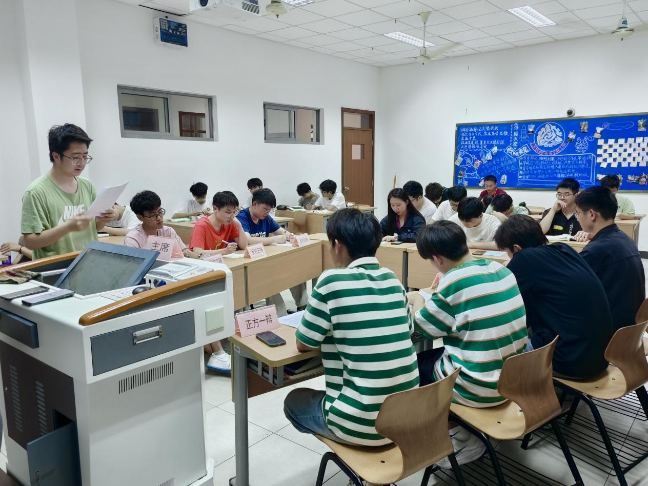 为更好贯彻我校“三抓三坚持”特色育人理念,深入落实辩论训练工作实施,验收大一年级辩论训练情况。人工智能学院大一年级教研组于2024年5月20日至23日,在日华楼晚自习教室进行了辩论训练期末考核,于2024年5月30日在明华楼460进行了辩论训练院级考核。参与本次考核的评委有:人工智能学院党总支组织委员兼人工智能学院第三党支部书记陈树平、辅导员徐婧老师、张超军老师,以及各班带训辩论助理。