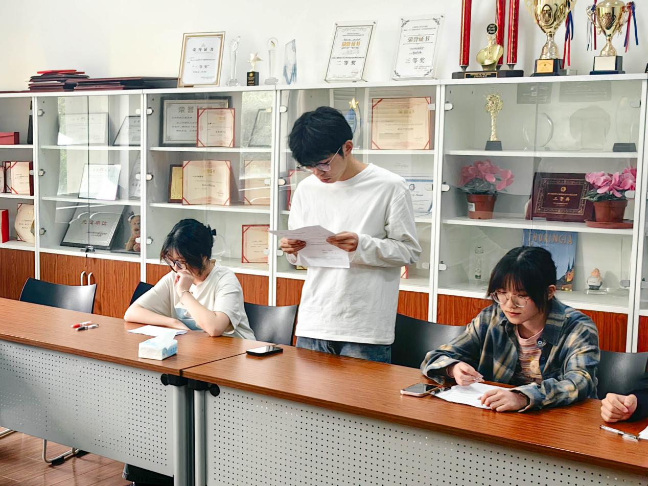 本场考核是由23级通信班作为正方和23级机电班作为反方组成的一支队伍。本场考核的评委有:人工智能学院英文辩论指导老师荣俊如、分团委书记徐婧。