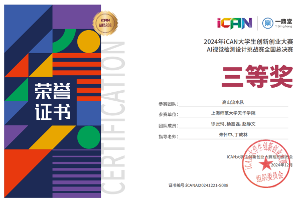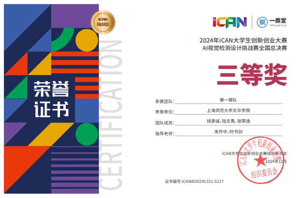 2024 年 iCAN 大学生创新创业大赛 AI 视觉检测设计挑战赛全国总决赛,于 12 月 20 日至 22 日在风景秀丽、学术氛围浓厚的福州大学至诚学院盛大举行。此次大赛备受瞩目,吸引了来自全国各高校的 773 支参赛队伍踊跃参与,他们在各自赛区展开了激烈角逐。经过层层比拼与严格选拔,其中 145 支实力超群的优秀团队脱颖而出,成功晋级全国总决赛。值得一提的是,上海师范大学天华学院的人工智能学院有两支团队突出重围,获得宝贵的决赛入场券。在备赛期间,指导教师朱怀中、时书剑、朱宇光和丁成林以深厚的专业知识和丰富的实践经验,为参赛学生提供了全面而有力的支持。比赛当天,朱怀中与朱宇光两位老师亲自带队,带领两支斗志昂扬的团队,以最佳状态投入这场巅峰对决,奋力向荣誉进发。